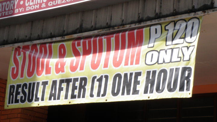 "Stool and Sputum- 120 pesos only" -wha?!?!?!